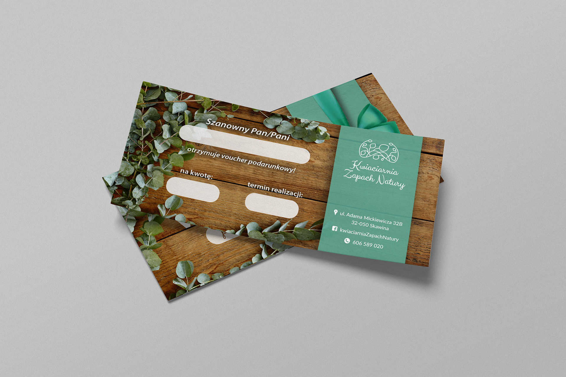 Projekt vouchera dla kwiaciarni Zapach Natury